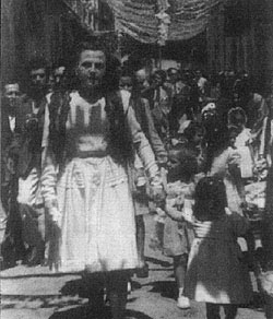 ![]() La Plaça a punt per acollir les festes. 1934 "Tots els barris la necessitaven (la mata) per guarnir cordes i "llibants" que quedaven enramats..." (Cedida per Lluis Domingo) |