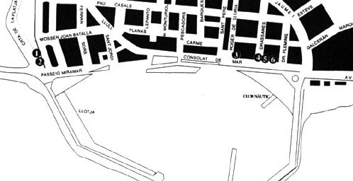 actual del port de Cambrils: (1) Joan Tutusaus Ferré (2) Josep Berengué Garsot (3) Julià Vives Castellví (4) Enric Salvat Tutusaus (5) Josep Vizcarro Vizcarro (6) Jacint Cros Cabré |