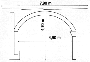 per uns 7,90 metres d'amplada total. Té l'estructura d'un arc de